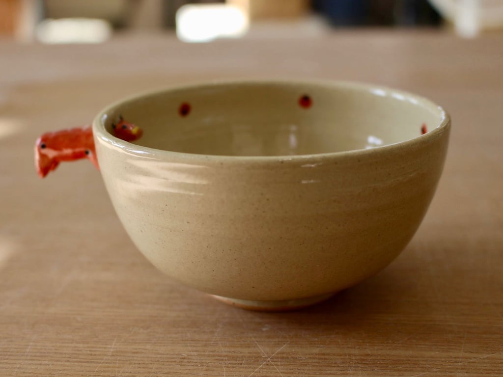 会津本郷焼は、1993年に伝統的工芸品の産地として指定を受け、現在も十数軒の窯元がそれぞれ特徴の違ったやきものを造っています。この地でオリジナル商品を手がける「陶房彩里」は、会津の郷土玩具「赤べこ」を用いた器をはじめ、普段使いの器を中心に提供。ロクロで作る器には、手に馴染むちょうどよい使い心地とあたたかみが感じられます。